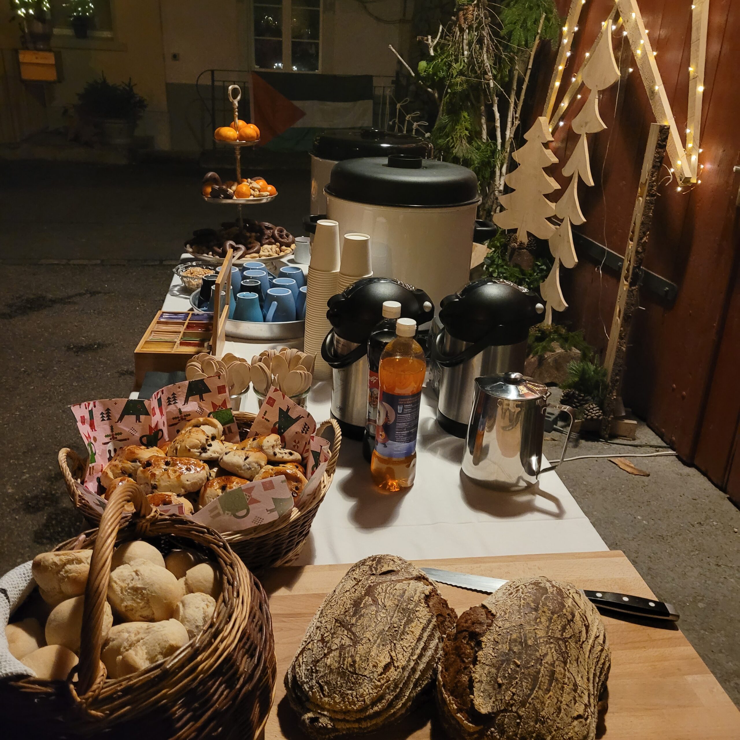 Das liebevoll gestaltete Fenster, das Monika und Beat für uns kreierten, wurde von Klein und Gross mit grossen Augen bestaunt, der vom Vorstand selbstgemachte und reichhalte Apéro und Glühwein überaus geschätzt und die tollen Vorlesegeschichten von Ariane gespannt verfolgt!